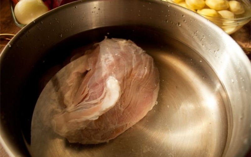 2. Gotuj pod przykryciem do miękkości przez około godzinę. Potem wyjmij mięso z garnka.