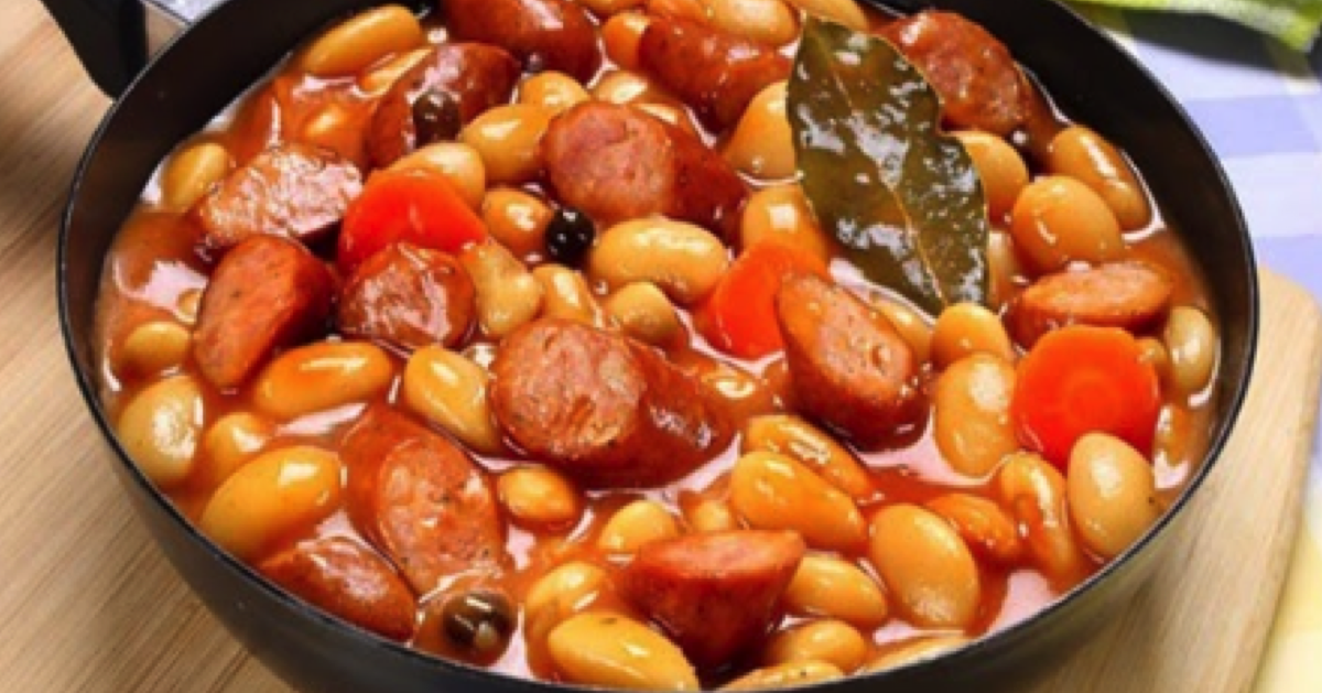 Biała fasola z dodatkiem kiełbasy- idealne sycące danie, które smakuje wszystkim w mojej rodzinie.