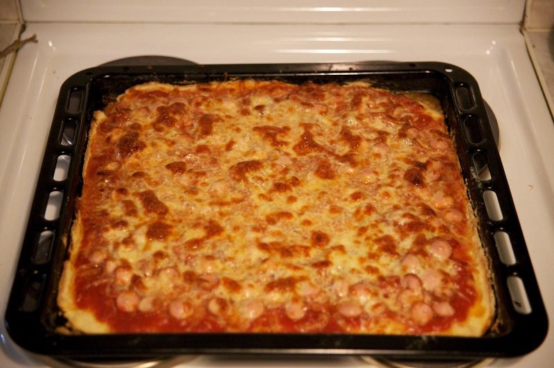 7. Ciasto do pizzy bez drożdży powinno być pieczone w piekarniku przez 7-10 minut w temperaturze 200 stopni.