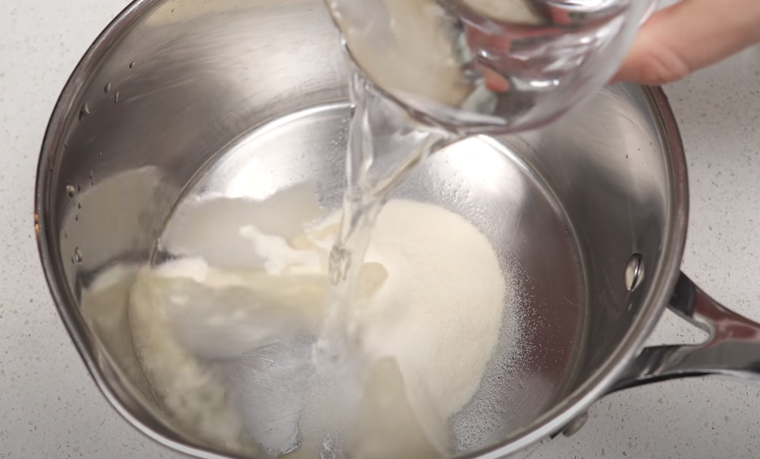 1. Żelatynę rozpuść 100 ml gorącej wody, potem ją wystudź często mieszając.