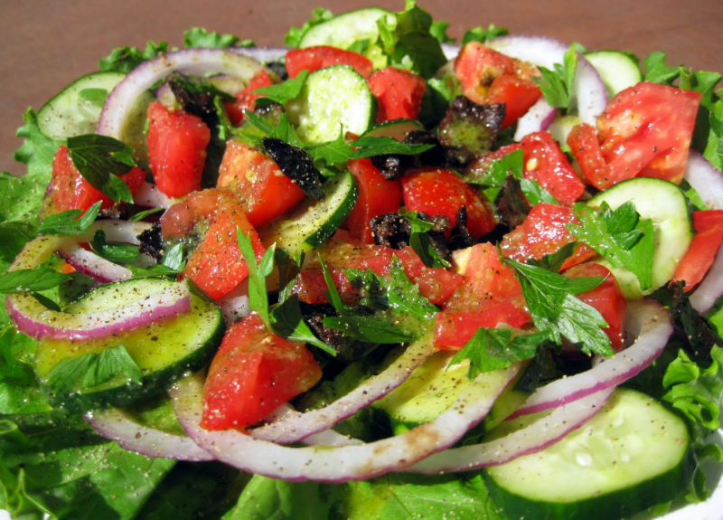 Obiad: Mix sałat, w skład którego wchodzić może szpinak, sałata zielona, rukola lub roszponka, 150 g chudej piersi z kurczaka gotowanej na parze lub pieczonej z dodatkiem ulubionych ziół, 100 gram kaszy gryczanej lub ryżu.