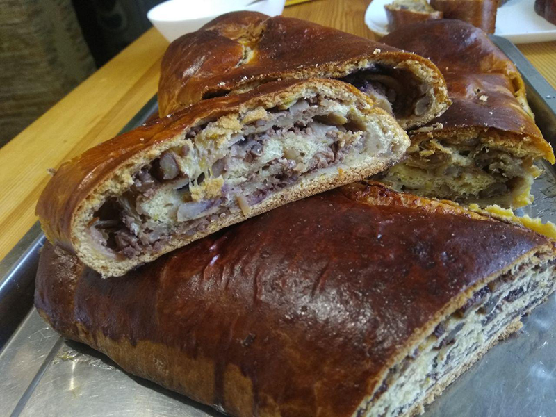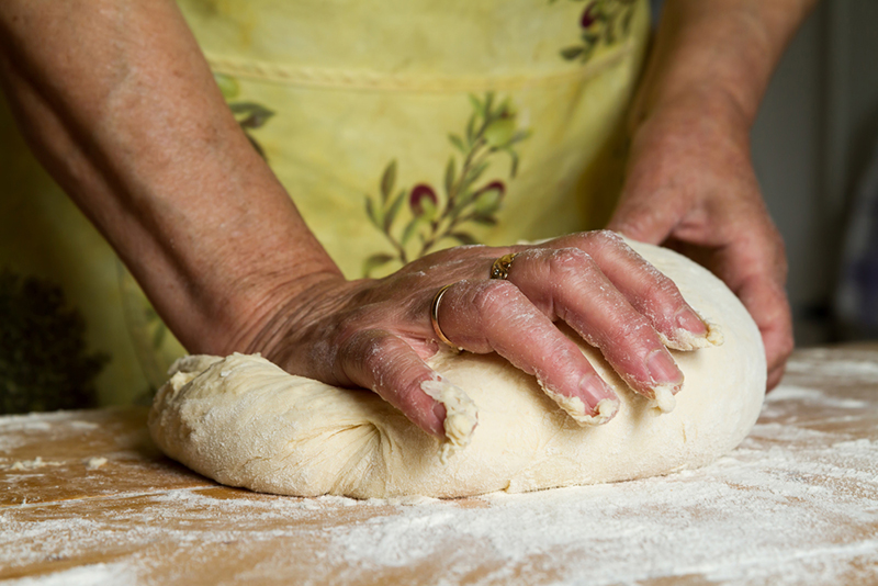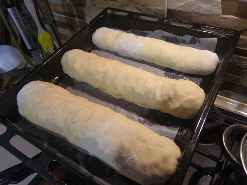 2. Gdy zaczyn urośnie, dodaj pozostałe płynne składniki. Wymieszaj i dodawaj przesianą mąkę porcjami, zagniatając miękkie, elastyczne ciasto. Gotowe ciasto przykryj ściereczką i umieść w ciepłym miejscu na 1,5 godziny.