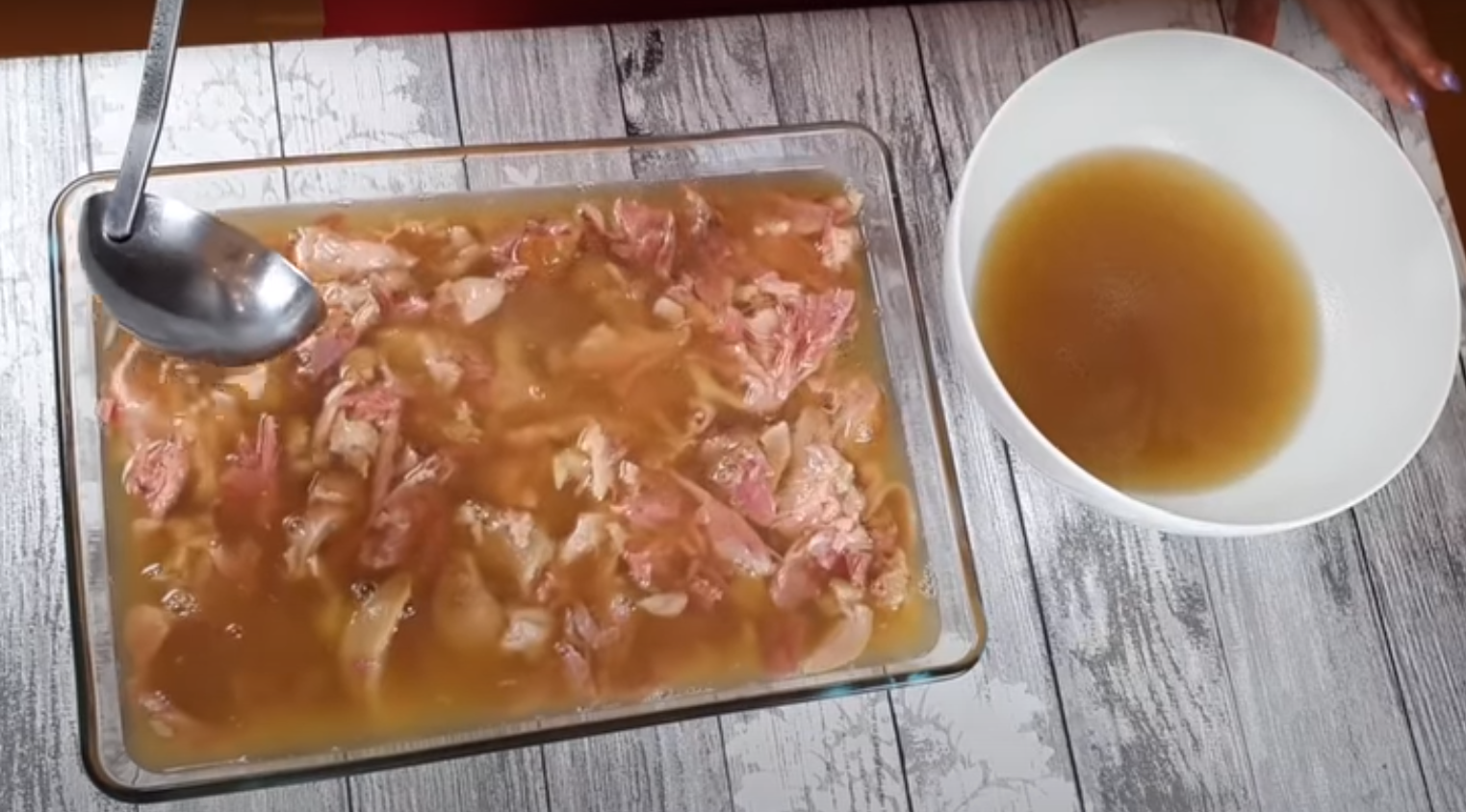 6.Chłodnym bulionem zalej przygotowane naczynia, po czym wstaw je do lodówki na całą noc, wtedy na pewno galaretka stężeje. Smacznego!