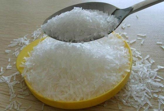 Pod postacią białego proszku, glutaminian sodu E621 bardzo przypomina sól i cukier.