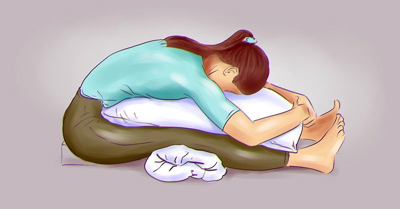 1. Będziesz potrzebować kilku poduszek i trochę czasu. Aby efekt był odczuwalny, należy utrzymać się w tej pozycji przez co najmniej 5 minut.