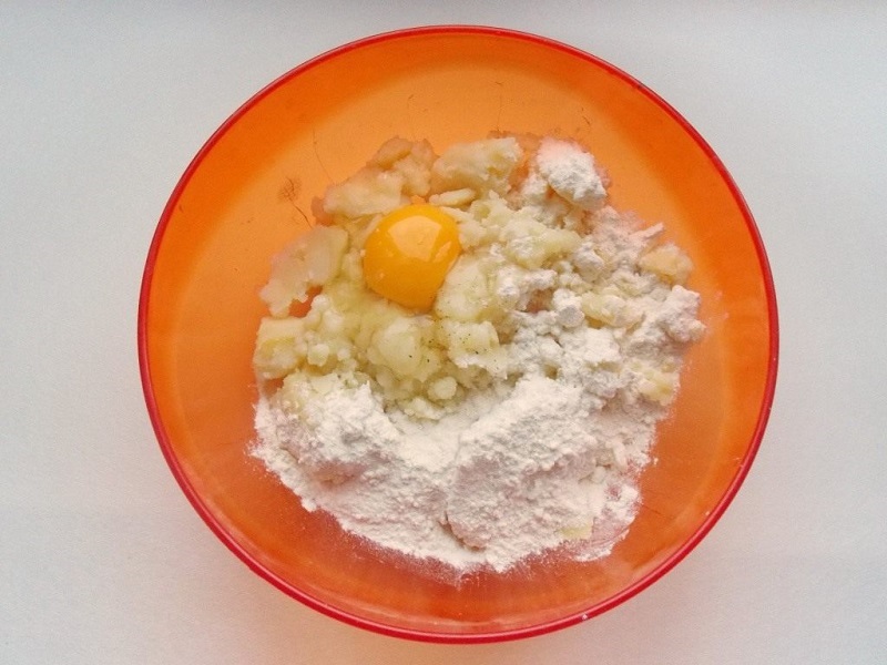 5. Do wystudzonej masy ziemniaczanej, dodaj jajko, mąkę i dokładnie wymieszaj.