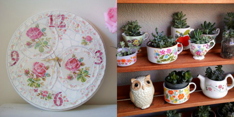 Jeśli posiadasz w kuchni miejsce na ozdoby wywołujące wspomnienia jak np. stary zestaw do herbaty, ale już dawno wybrakowany lub pęknięty to możemy dać mu nowe życie wykorzystując w inny sposób. Można go zamienić chociażby w doniczki do kwiatków. Warto wzbudzić swoją kreatywność.