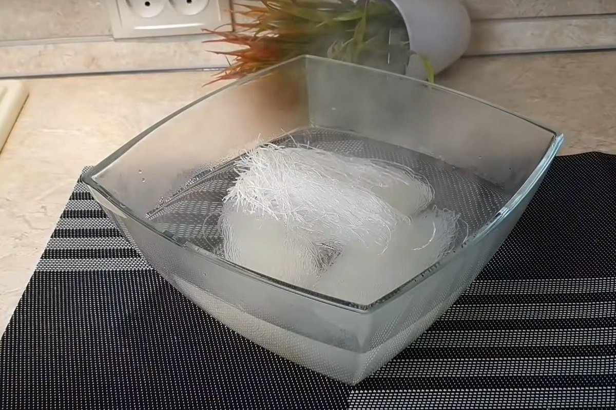 Przez 10-15 minut namaczaj makaron w przegotowanej wodzie.