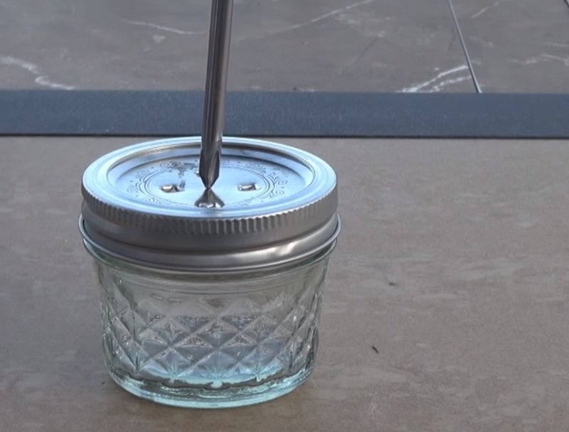 Zamknij słoik szczelnie pokrywką lub kawałkiem folii i dobrze wstrząśnij zawartością. Wykonaj kilka małych otworów w pokrywie, używając na przykład gwoździa i młotka lub śrubokrętu.
