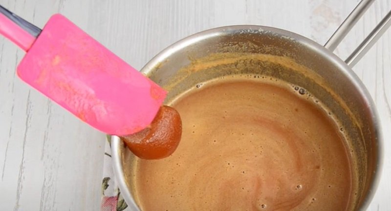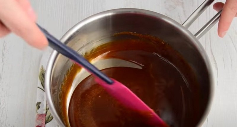 Zaczynamy od karmelu. Do garnka z grubym dnem wsypujemy cukier i wlewamy wodę, a następnie podgrzewamy masę często Ją mieszając aż cukier całkowicie się rozpuści i nabierze intensywnego bursztynowego koloru.