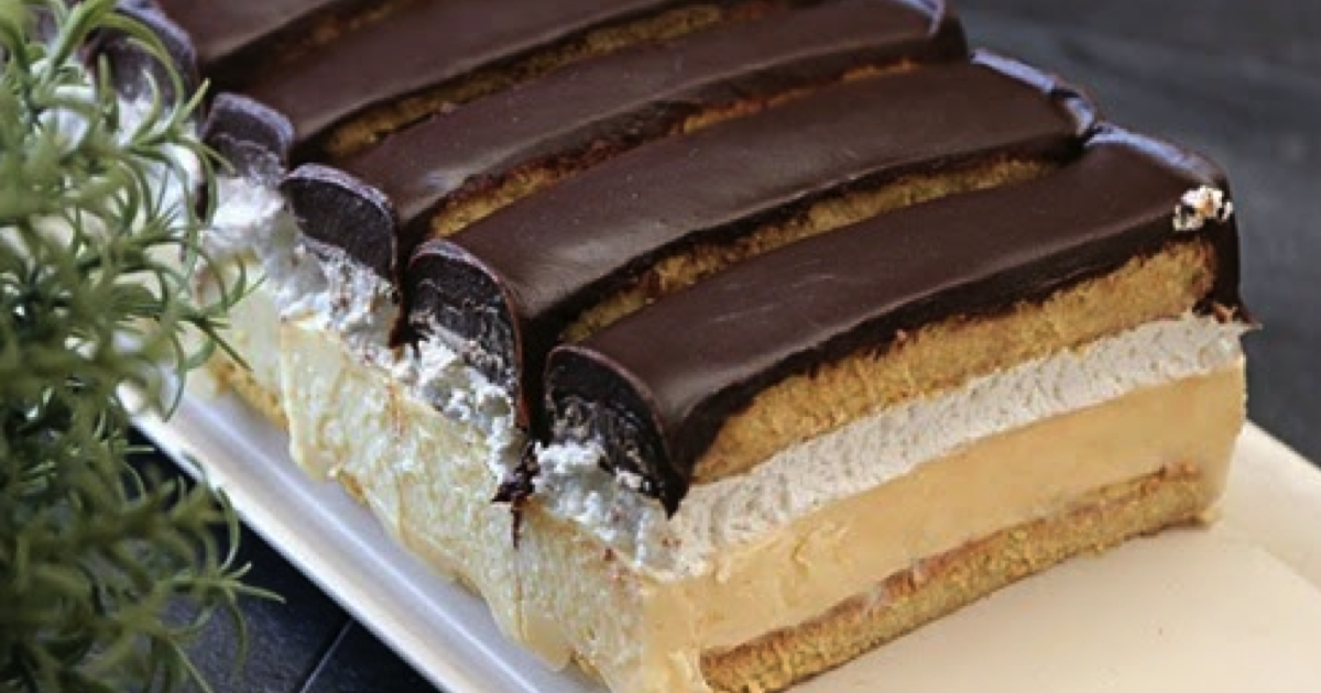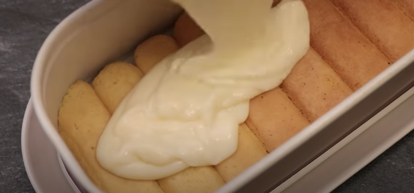 7. Teraz ułóż kolejną warstwę biszkoptów i polej je polewą czekoladową.