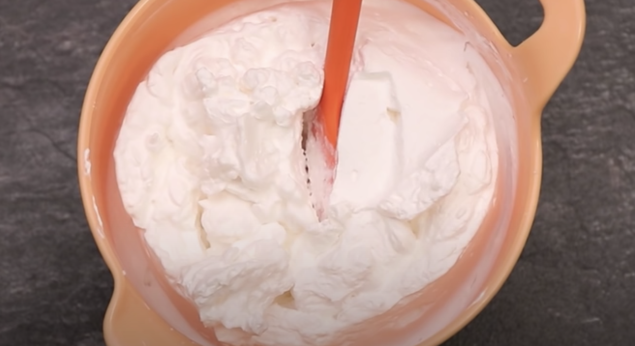 5. Z pomocą miksera na wysokich obrotach lub trzepaczką, ubij śmietankę.