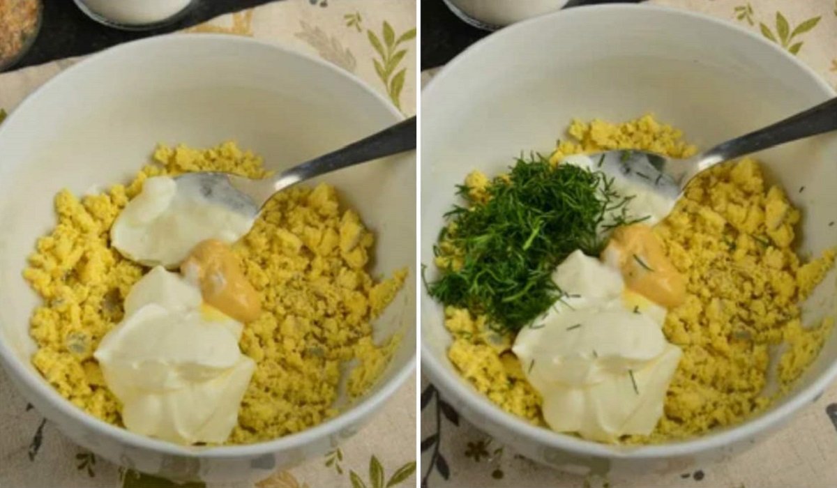 3. W miedzy czasie możesz przygotować sos. Do miski włóż musztardę , śmietanę, żółtka oraz posiekany koperek, całość bardzo dokładnie połącz ze sobą.