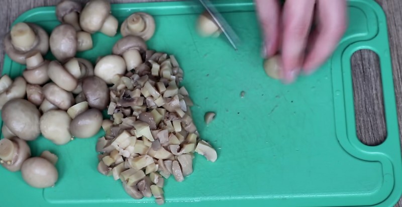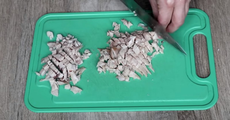 1. Pierś z kurczaka ugotuj, wystudź, a następnie pokrój w drobną kostkę. Możesz zamienić je na mięso z udek lub ćwiartek kurczaka.