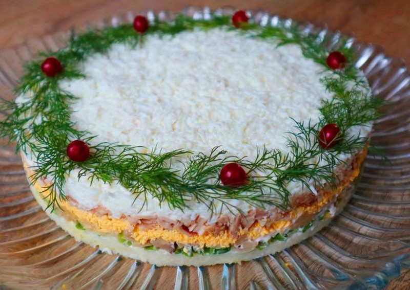 Czy istnieje lepsza dekoracja na świątecznym stole, niż niezwykła i pyszna sałatka? U mnie w domu sałatki warstwowe w różnych odsłonach są prawdziwym przysmakiem, ponieważ są soczyste i delikatne. Najszybciej jednak znika ze stołu ta z marynowanymi pieczarkami i kurczakiem. Szczerze mówiąc, wolimy ją nawet bardziej niż powszechnie znaną, tradycyjną jarzynową.
