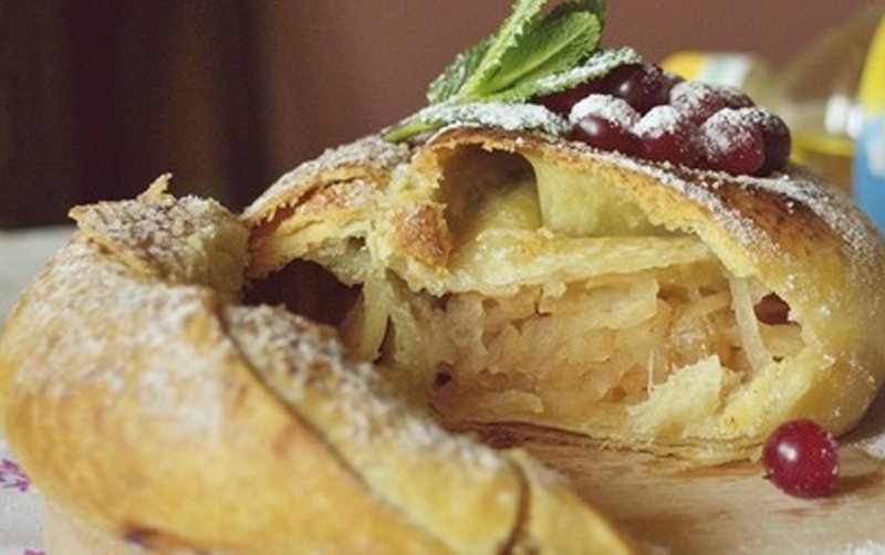 Strudel z jabłkami mojej babci na zawsze pozostanie w mojej pamięci. Jednak moja babcia często stosowała również strudel z innymi pysznymi farszami. Świetnie smakuje z kapustą, z mięsem i kapustą, z samym mięsem lub z kapustą i grzybami.