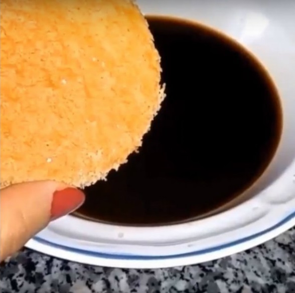 2. Używając szklanki powycinaj 8 kółeczek z biszkoptu. W ostudzonej kawie namaczaj wycięte kółeczka.