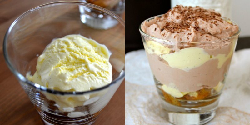 3.Na dół pucharku połóż biszkopt , po czym układaj 1,5 łyżki białej masy oraz 1,5 ciemnej. Na tak wyłożone masy połóż ponownie biszkopt i kolejne warstwy ciemne oraz jasne.