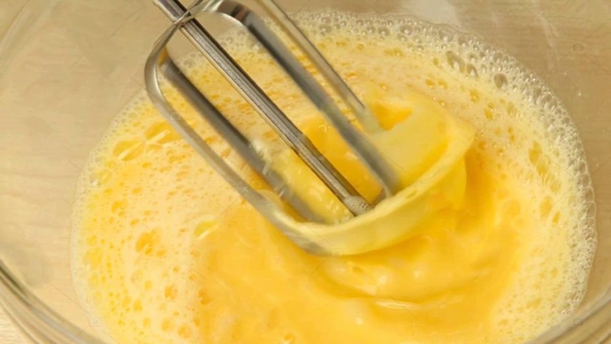 2. Jajka, ubij mikserem na wysokich obrotach. Ugotowanego fileta, z roztopionym masłem zmiel blenderem.